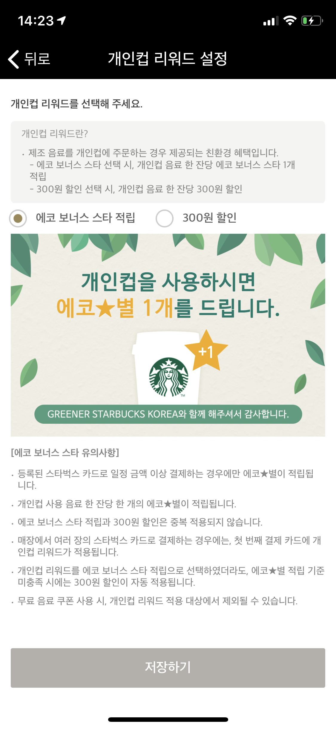 4. 에코 보너스 스타 적립 선택 (또는 300원 할인 선택)